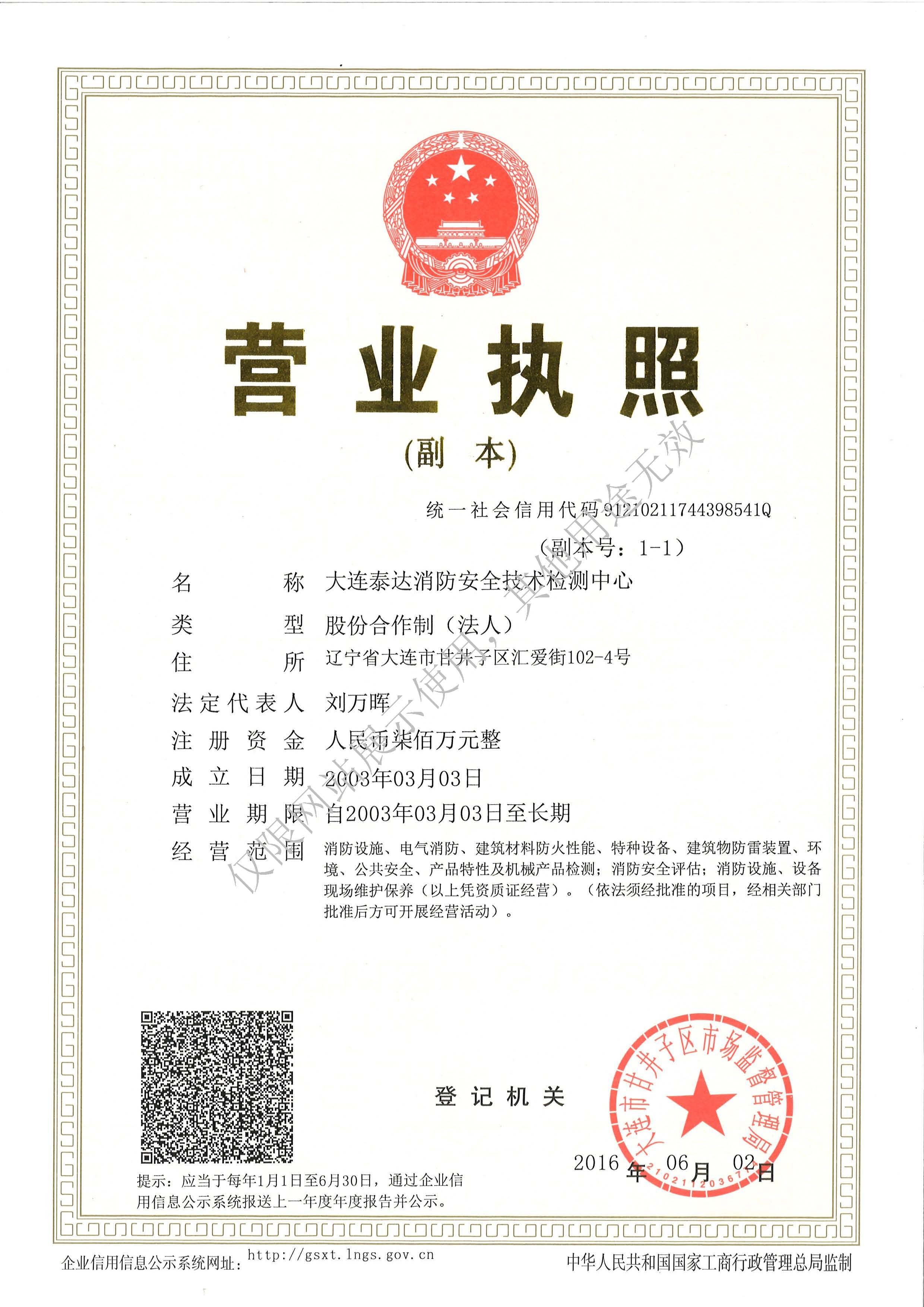 是經“社會消防技術服務信息系統”備案并公示的消防技術服務機構,已取得中國氣象局頒發的雷電防護裝置檢測資質證書、遼寧省質量技術監督局審核批準的檢驗檢測機構資質認定證書(CMA)及包括消防檢測、電氣檢測、雷電防護裝置檢測、防火涂層厚度檢測等在內的200余項檢驗檢測能力,取得大連市應急管理局頒發的安全生產標準化證書,獲得質量管理體系、環境管理體系、職業健康安全管理體系認證證書,是經備案的高新技術企業,可獨立出具具有證明作用的檢測報告。